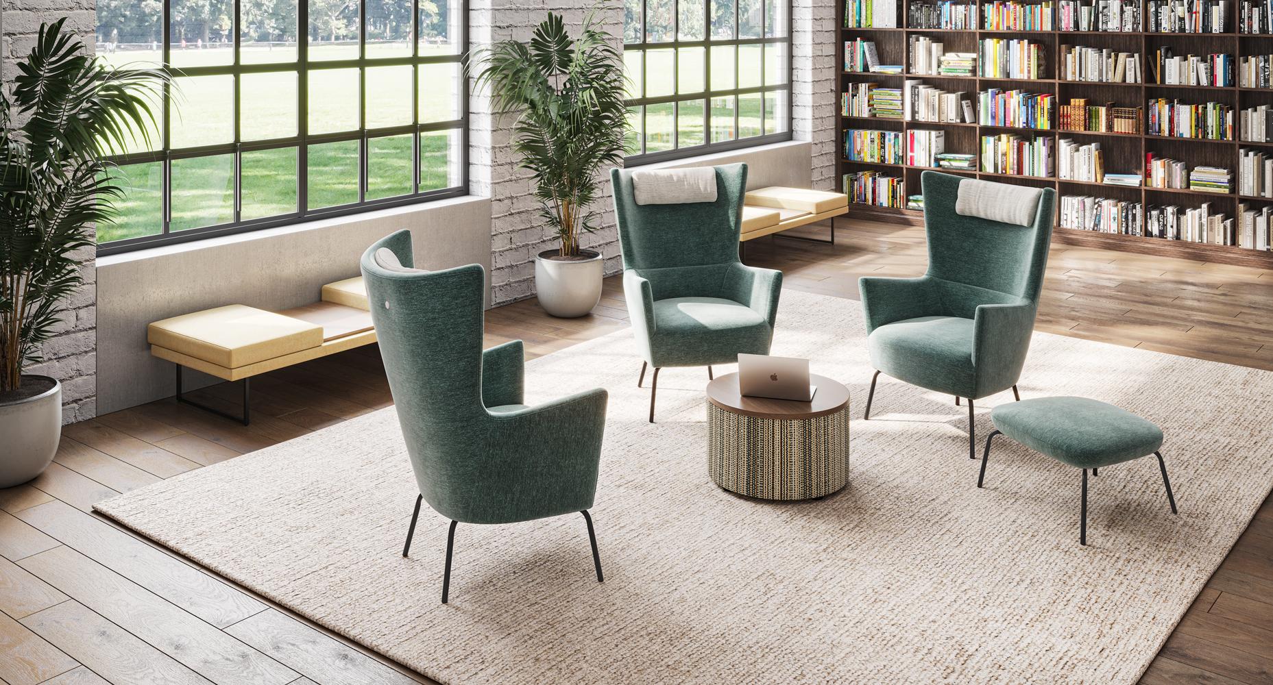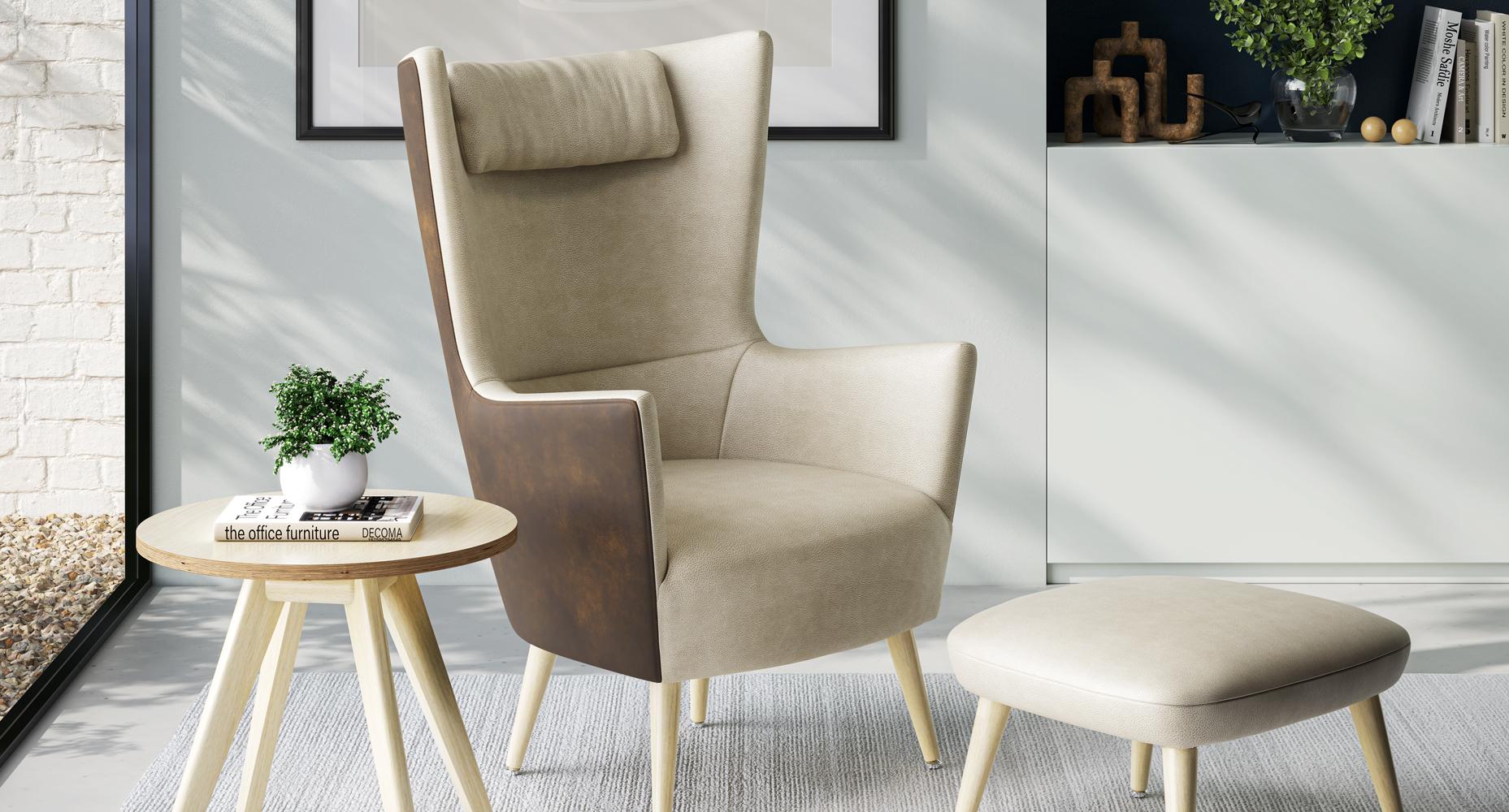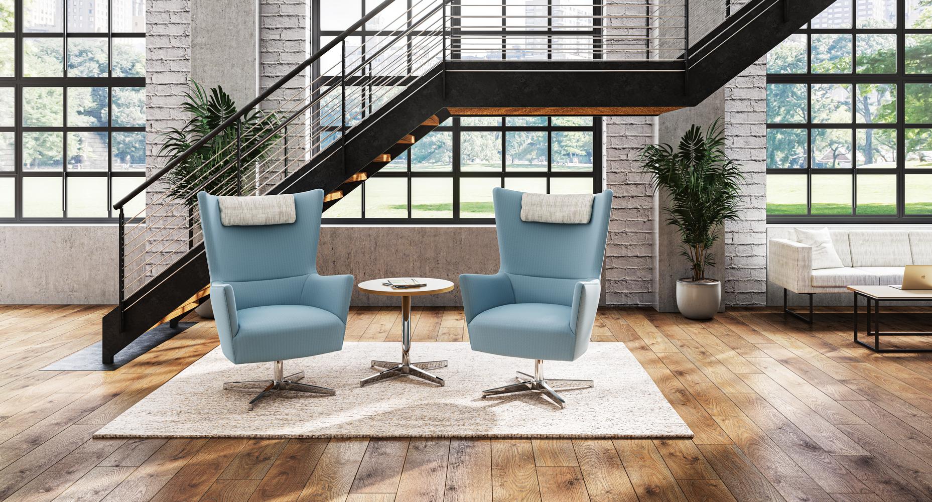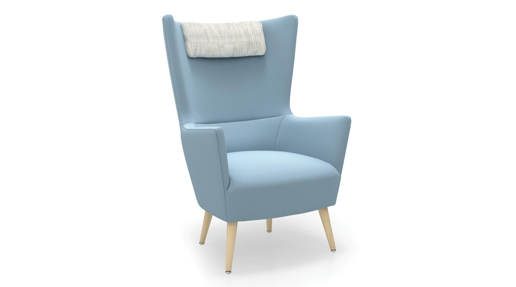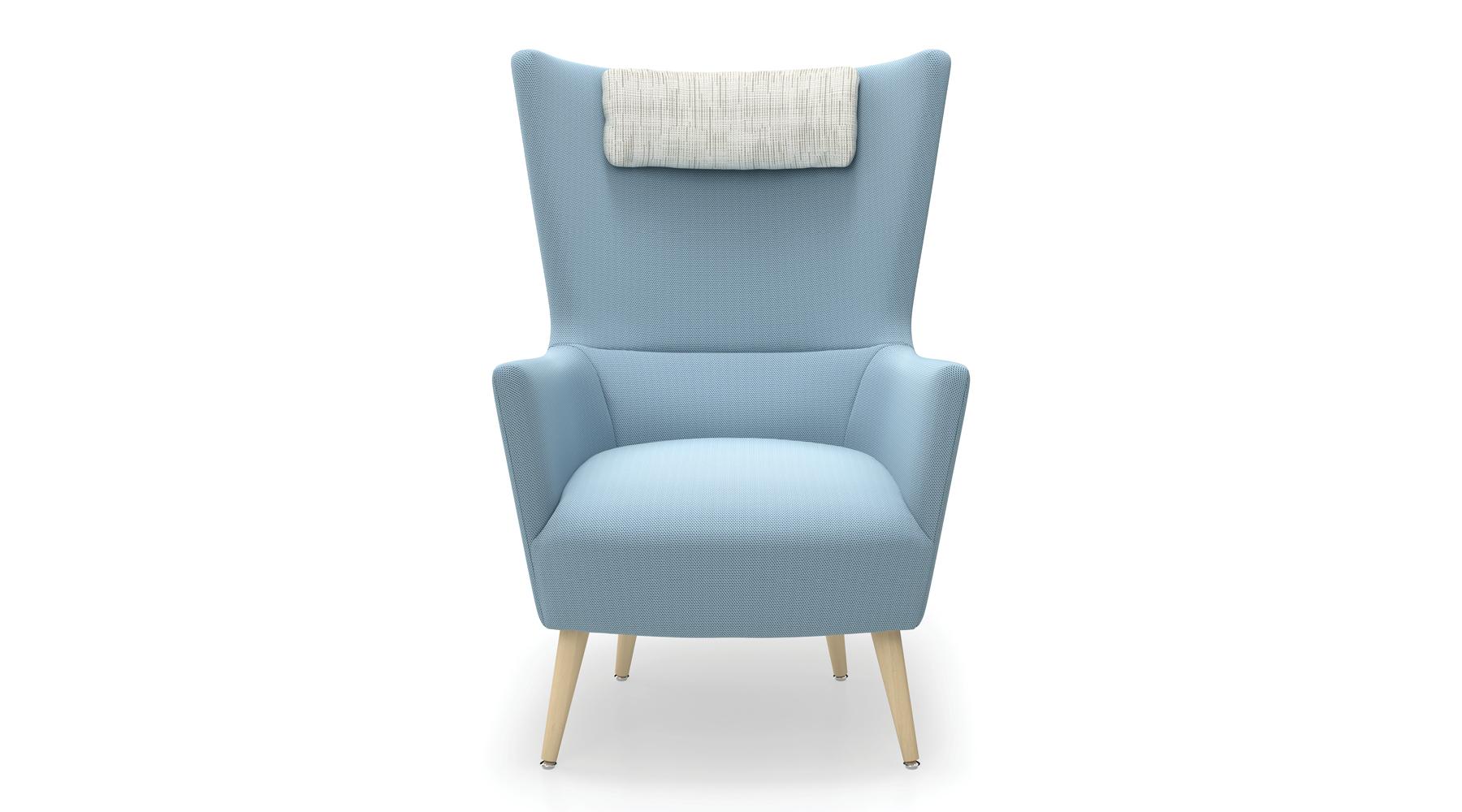 The newest addition to Trinity Furniture's lounge seating features a new silhouette with softly padded arms that flow into sculptural wings that are shaped to offer a sanctuary of privacy. Crest is crafted with elegant stitching details and seating comfort is enhanced with the addition of an attached headrest pillow. Additionally, base selections include tapered wooden legs, metal tubular legs, and a flat polished aluminum base for the Crest lounge pieces, as well as for the matching ottomans.