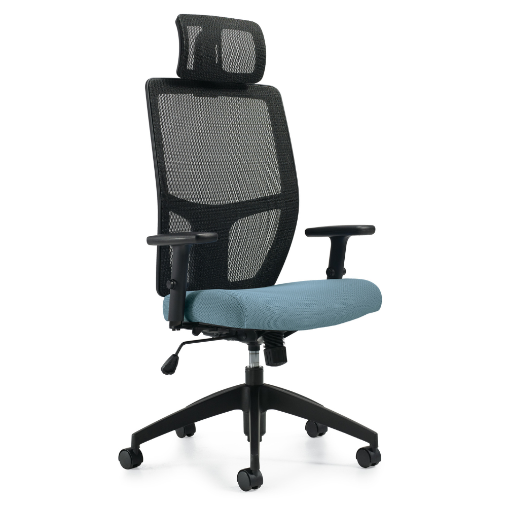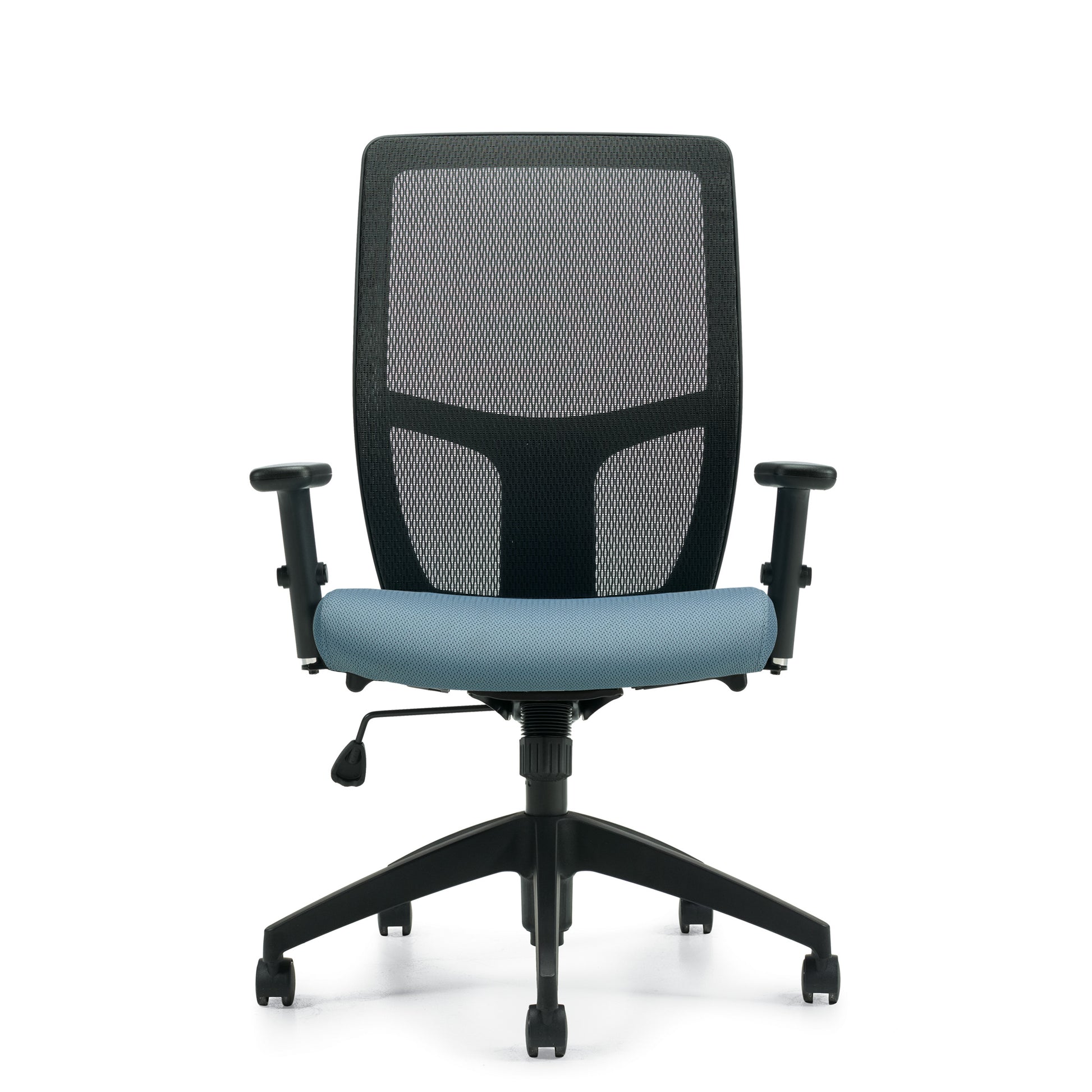- Height and width adjustable arms with soft-skinned urethane armcaps that slide forward and backward