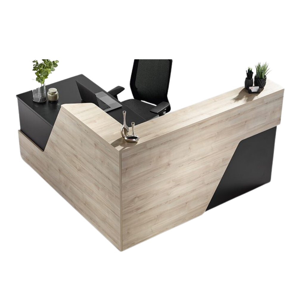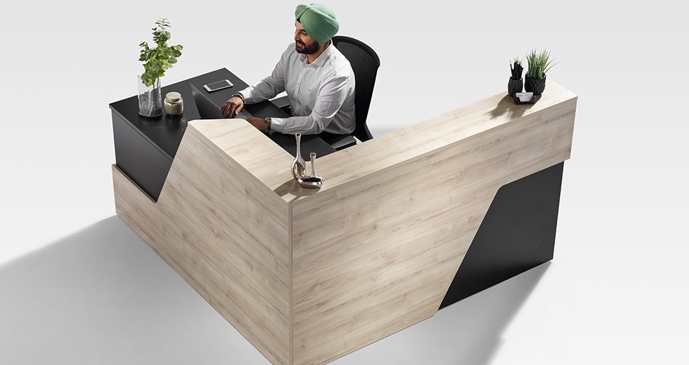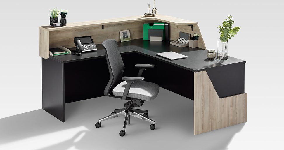Elevate your first impressions with the Karibu. Sharp, defined angles give the Karibu reception desk its noteworthy, statement aesthetic.