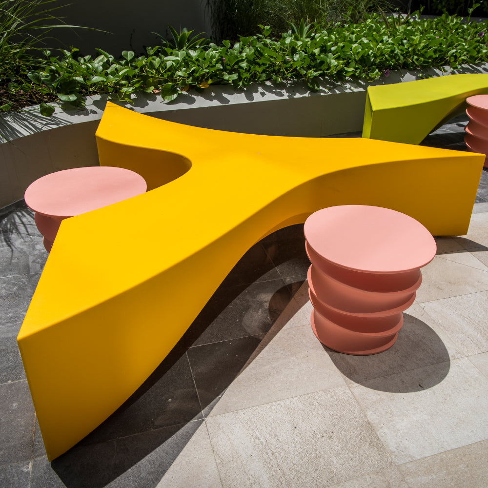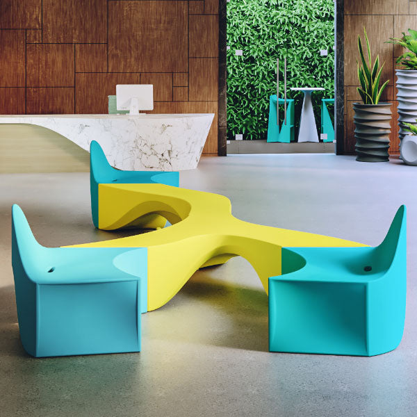 The Riptide Wishbone is the collection’s wildcard. It bends, flares and curves in three different directions and is the piece that allows for the most creative configurations. It’s made of highly durable polyethylene and is UV resistant, making it perfect for indoor and outdoor settings of all kinds. Want something unexpected? Flip the wishbone up on its two feet, push it up against a wall and call it art.